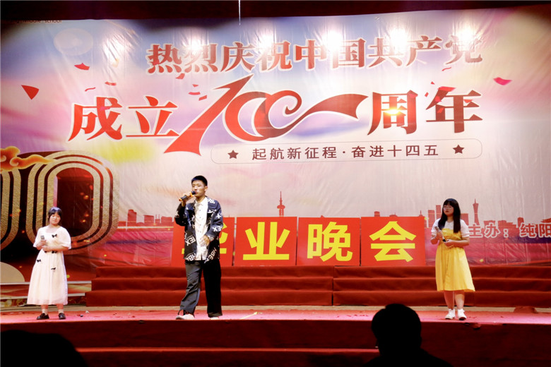 原来告别的终点,就是我的新起点 一曲青春激昂的《我的天空》,毕业典礼正式拉开了帷幕。 全体师生们首先观看了专属于高2021届学子的专版短片,同学们都屏住呼吸,生怕错过了影片中每一帧镜头。看着自己高一参加军训时的青涩稚嫩,看着自己在学校各类活动上的初露锋芒,看着自己和同学齐跳韵律操的青春飞扬,看着自己在运动场上的热血澎湃,看着自己在百日冲刺中的化茧成蝶......那些在纯阳生活学习的青葱岁月,难舍难忘。老师们也全神贯注,只想再多看一眼,那个他们陪伴了一千多个日夜的你。 人人尽皆倾情出演,帧帧必将恒久流传。 在临别之际,高三学子为纯阳献上最后的歌舞,告别曾经承载着青春与梦想的舞台。 这个夏天,我们毕业了。 高三(6)班同学作为毕业生代表发言,回首高中三年的美好时光,话语中流淌着对高中生活的珍惜与眷恋,对青春成长的喜悦和感怀,和对未来璀璨人生的憧憬与展望。 饮水思源,学成谢师。一束鲜花,一捧深情。一个拥抱,一切尽在不言中。 高三学生代表向高三全体教师献花。一束束鲜花饱含着对老师的感激之情,唤起了三年间的点滴情怀,也续写着未来的友谊长青。一个个拥抱是最不舍的依恋,那是纯阳人一生难忘的纯阳情。 毕业是懵懂的结束,更是成熟的开始。三年前,我迎你们入校;三年后,我送你们远行。在同学们离开高中校园,走向广阔天地之时,高三学部长曾平为大家带来了最后一场集体讲话,送上真挚的嘱托:在这个美好的时代里,成才和成功都只有靠自己去努力拼搏,希望你们要胸怀梦想,时刻增强修养,做一个永存理想和信念的人;希望你们要不断学习,做一个不断增长生活智慧的人;希望你们能身体力行,做一个崇德尚志,务本求真的人;希望你们要学会感恩、懂得包容,做一个敢于担当,勇挑重担的人。临别之际,我想对你们说:海阔凭鱼跃,天高任鸟飞。祝你们在今后的人生道路上越走越好! 高三的同学们为母校赠送“师恩泽厚”的牌匾,表达对母校深深的感激。 校委会领导、曾平部长上台为全体高三学子颁发毕业勋章。 当一张张照片留住离别的瞬间,当一个个身影最后一次出现在纯阳的校园,欢声笑语里有你们的自信与热情,低头凝思里有你们的成长与年华,流连忘返里有你们的不舍与牵挂。 数载学海泛舟,多年寒窗苦读;迎着星辰早起,披着月光晚归。这样的场景在纯阳,日日夜夜交相上演,但你,却将要在今夜退出这个舞台。 毕业晚会既是对高中生活的总结,更是对未来美好生活的期盼。 最后全体同学齐唱《再见》,每个告别都能等到一句再见,这是你们又一个故事的起点。 初见时,是落英缤纷的九月,大家在纯阳校园开启美好的高中时光;离别时,细雨纷飞的仲夏,纯阳在你们青春的纪念册里留下了难以割舍的成长印记,你们和纯阳共同见证了学校20周年华诞的盛典华章,在抗疫的斗争中经受了考验,在学习生活中收获了成长,分享了同窗好友的青春芳华。你们的每一点进步,每一份荣光,都成为了纯阳独一无二的记忆。 相伴三年,恋恋不舍,但终有一别。你远去,我目送,目送你们飞向祖国的四面八方,直到看你走入天高地阔之中,终于行稳致远。愿同学们心中有格局,眼中有远方,肩上担责任,脚下有力量。愿同学们长存感恩心,永怀赤子心,笑得舒心,活得坦荡。愿同学们脚踏实地,无惧风雨,不负韶华,乘风破浪。无论同学们飞得多高,行得多远,你们依旧是母校的牵挂。