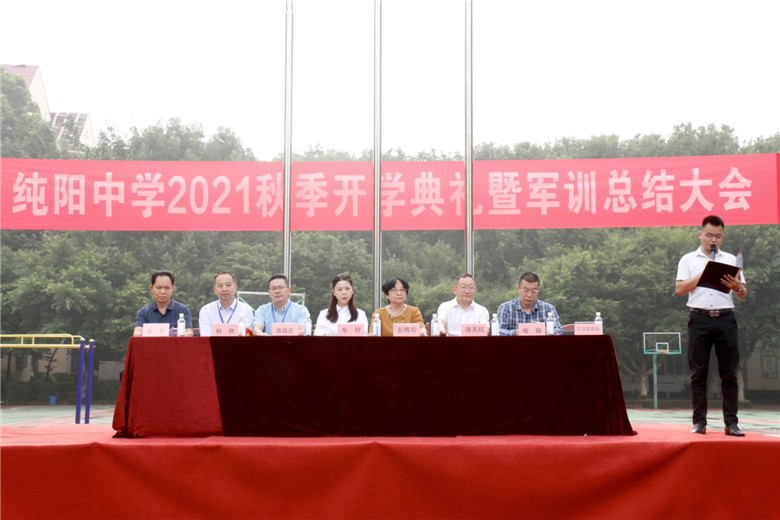 初升的旭日,照耀着崭新的起点,励人向前;金秋时节,清风送爽,相约纯阳,壮志启航。9月9日上午,我校全体师生齐聚学校田径场,隆重举行2021-2022学年度开学典礼暨新生军训总结大会。校董事长彭辉珍、副董事长牟铃、监事长谭英权、校长黄国庆、常务副校长喻路、党支部书记杨胜、高2021级学部部长曾平岀席大会。大会由特色课程中心主任熊国胜主持。